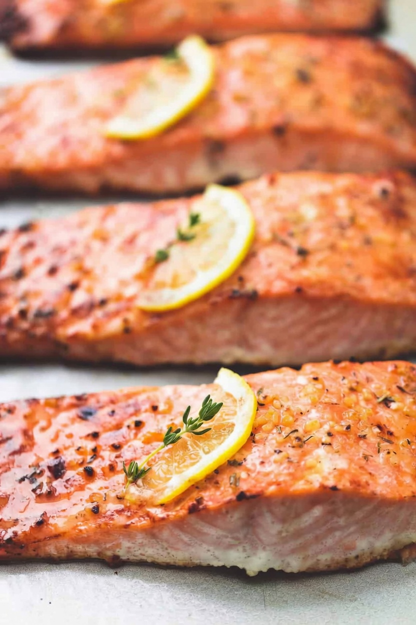 Add thin slices of lemon on top or around the fillets for a bright, citrusy aroma that complements the richness of the salmon.