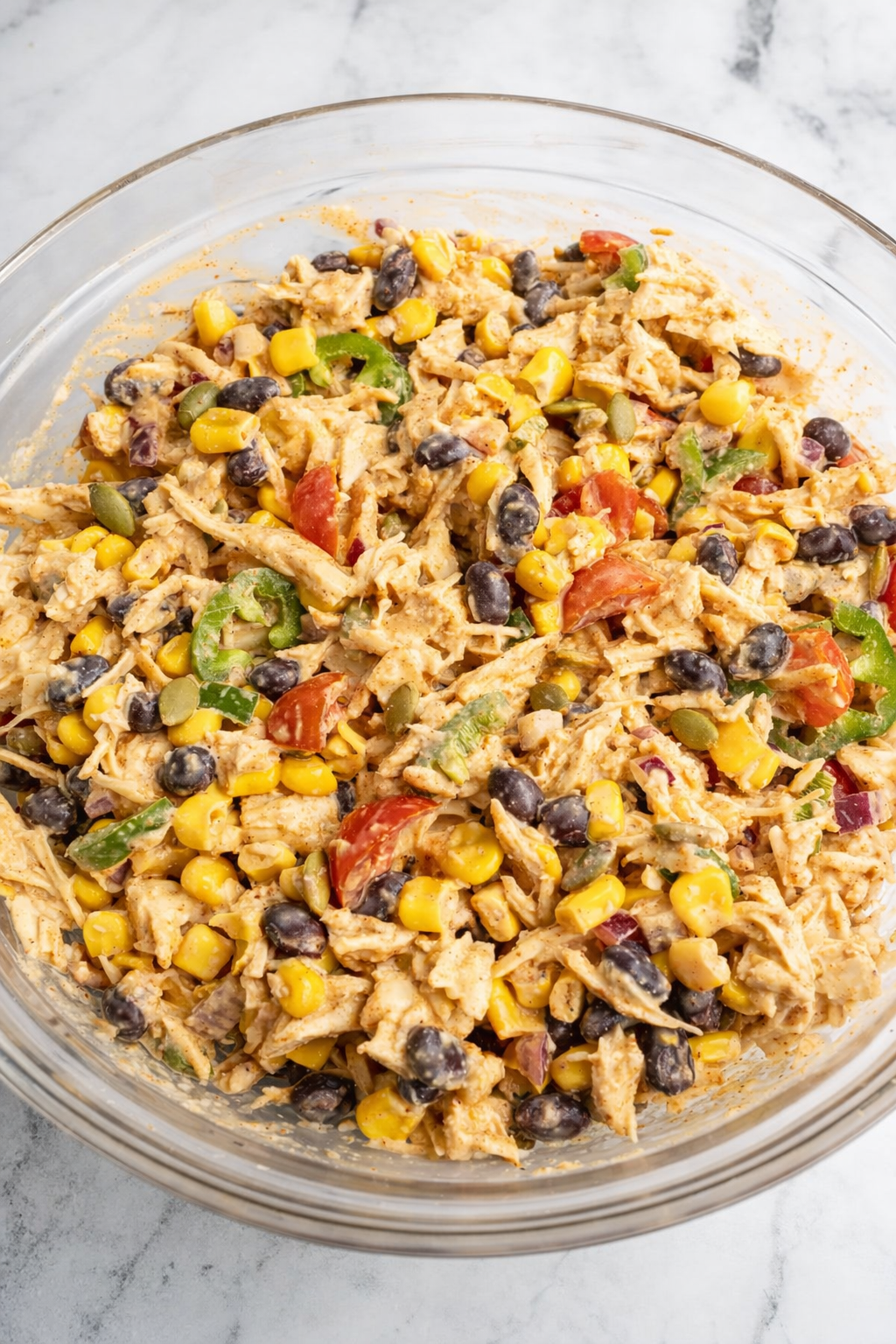 To get the most flavor out of this salad, I always recommend letting it rest in the refrigerator for at least 15–20 minutes before serving. This gives the dressing time to soak into the chicken and beans, making every bite more flavorful.