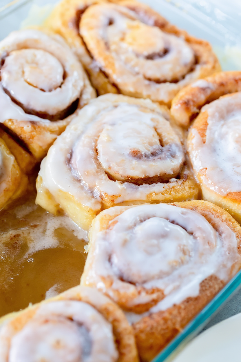 I place the baking dish in the preheated oven at 350°F (175°C) and bake the cinnamon rolls for 25–30 minutes, or until they’re puffed up and lightly golden on top. The aroma of butter, brown sugar, and cinnamon filling the kitchen is honestly irresistible—I always find myself peeking through the oven door!