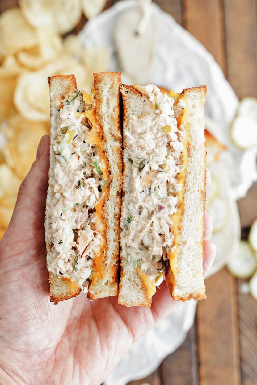 Once cooked, I slice the sandwiches diagonally for that classic diner look. Tuna melts are best served immediately while warm and gooey. For a complete meal, I like to serve mine with a side of pickles, potato chips, or a fresh green salad.